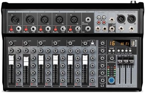Depusheng Professional Audio Mixer, 7 Channel Audio Interface Sound Board Mixing Console System, 16-Bit DSP DJ Bluetooth Mixer +48V Phantom Effect For Karaoke Studio Streaming Recording (XT7)
